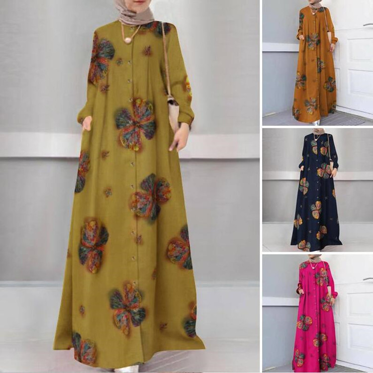 国境を越えたレトロな服装民族風ゆるい長袖ガウンワンピースイスラム教徒シャツスカート