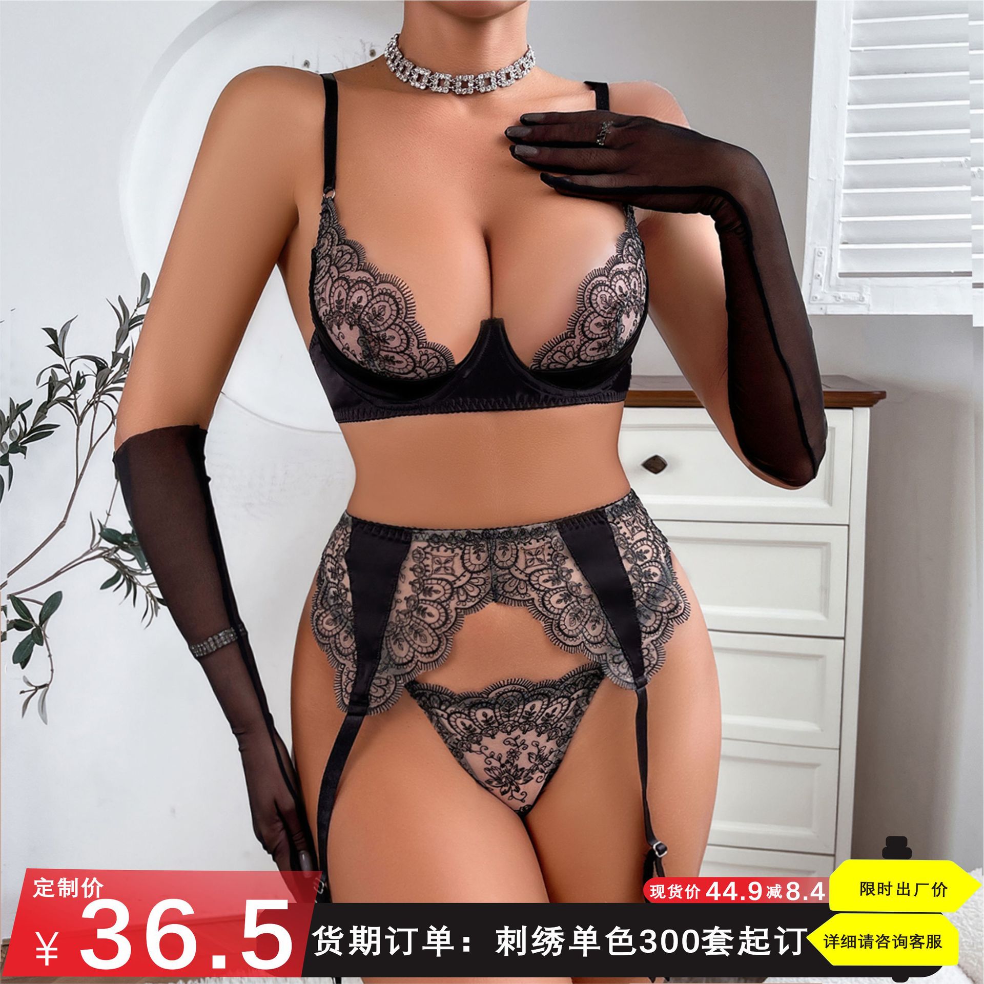 欧米欧米のモデル2025ファッションの新型セクシー刺繍レースの趣味露背下着セット4点セット