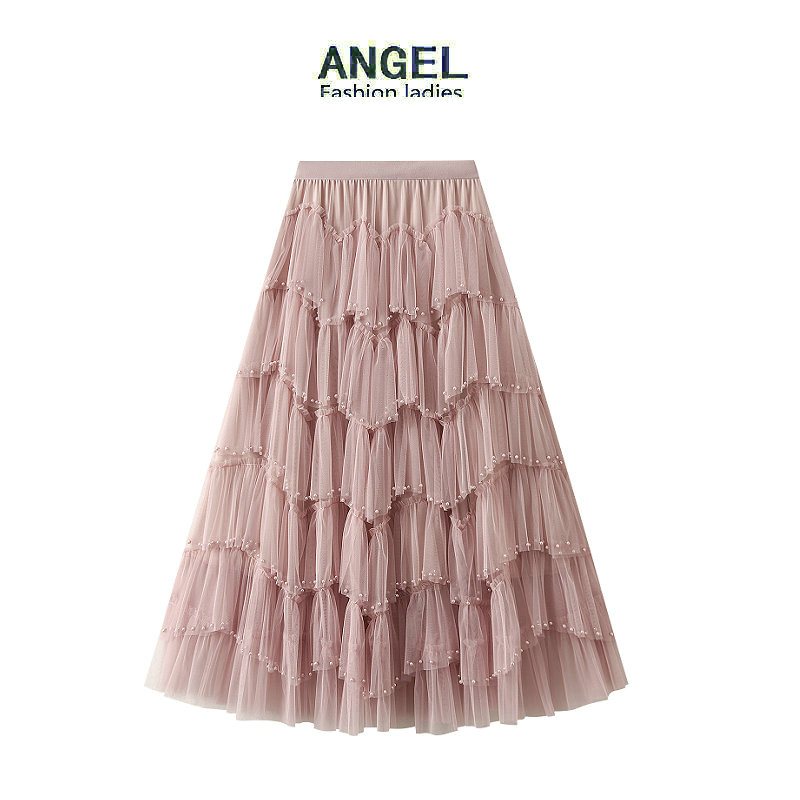 重工のビーズのケーキのスカートの網の糸の半身のスカートの女性の仙人の女性の長いスカートの高腰のガーゼのスカートの1220