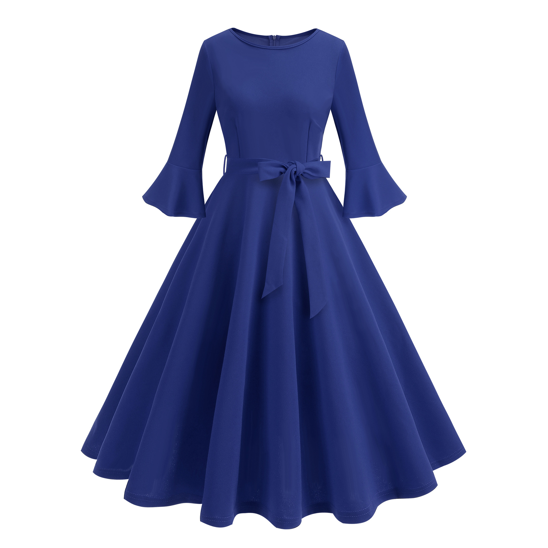 アマゾン欧米の国境を越えた丸首純色パーティークリスマスハロウィーンレトロで優雅な女性ワンピース8826