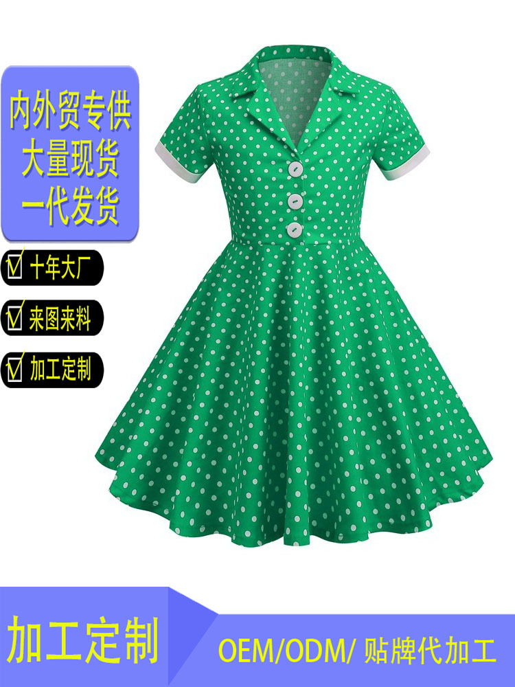 アマゾンクロスボーダー欧米女子子供服外国貿易袖波点プリントレトロ子供服半身スカートT8206
