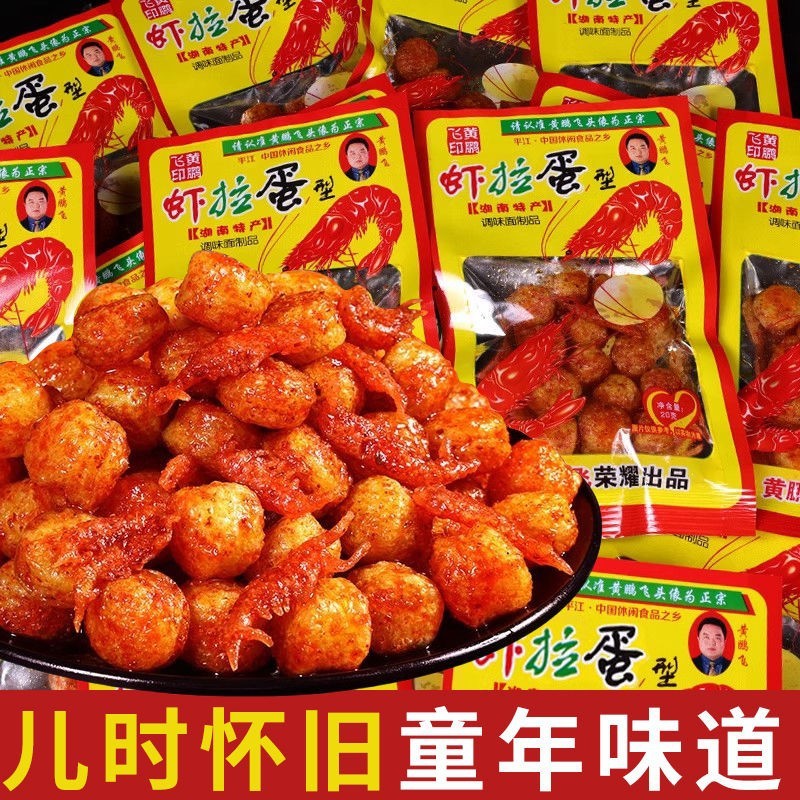 黄鵬飛エビ卵スパイシーストリップ 8090 懐かしい子供時代のキャンパスベジタリアンエビボールスパイシーフィッシュとエビスナック