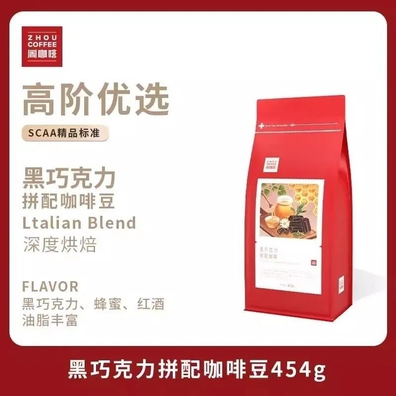 ブラックチョコレートブティック イタリアンブレンド 雲南小粒エスプレッソ豆 アメリカンミルクコーヒー 深煎り 454g