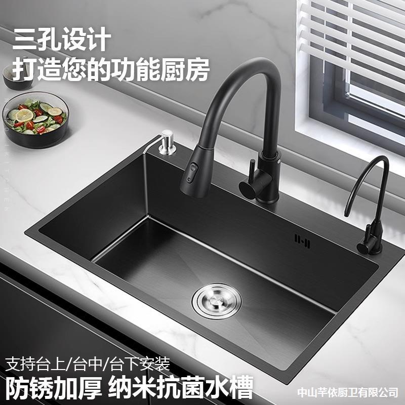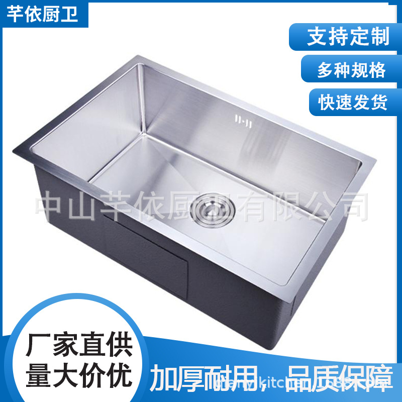 SUS304ブラッシュド仕上げキッチンステンレス大型シングルシンク食器洗い桶家庭用ハンドメイドアンダーカウンターシンクナノシンク