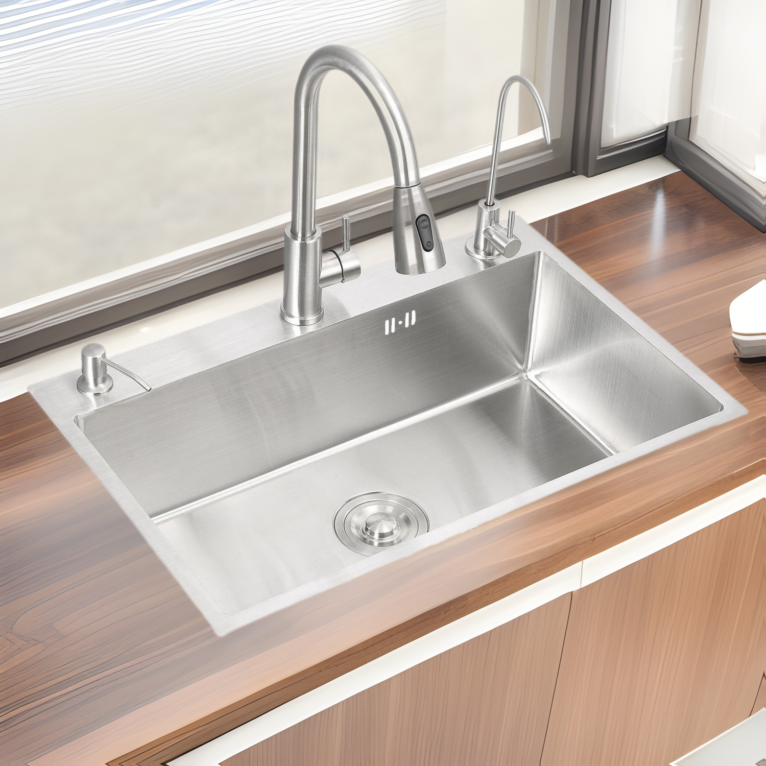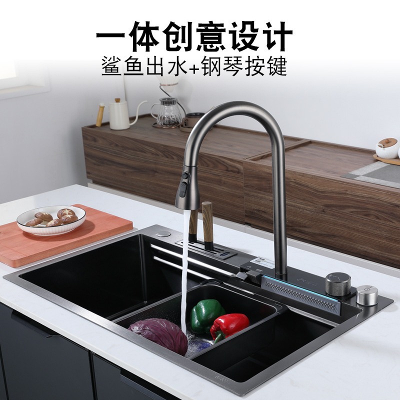 304クジラ水槽デジタル表示飛雨滝水槽キッチンステンレス洗面器ネット赤日式大単槽