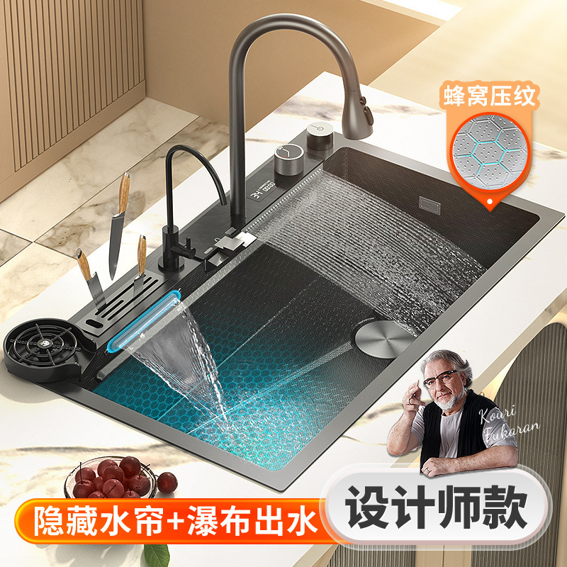 ハニカムのエンボス表示サメ飛雨滝水槽ナノブラック304キッチンステンレス洗面器大単槽