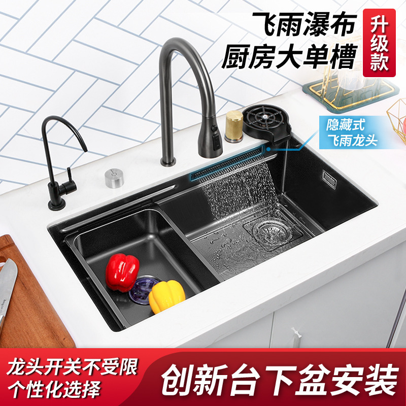 飛雨滝水槽伸線大単槽キッチン洗面器304ステンレス洗面器家庭用洗面槽