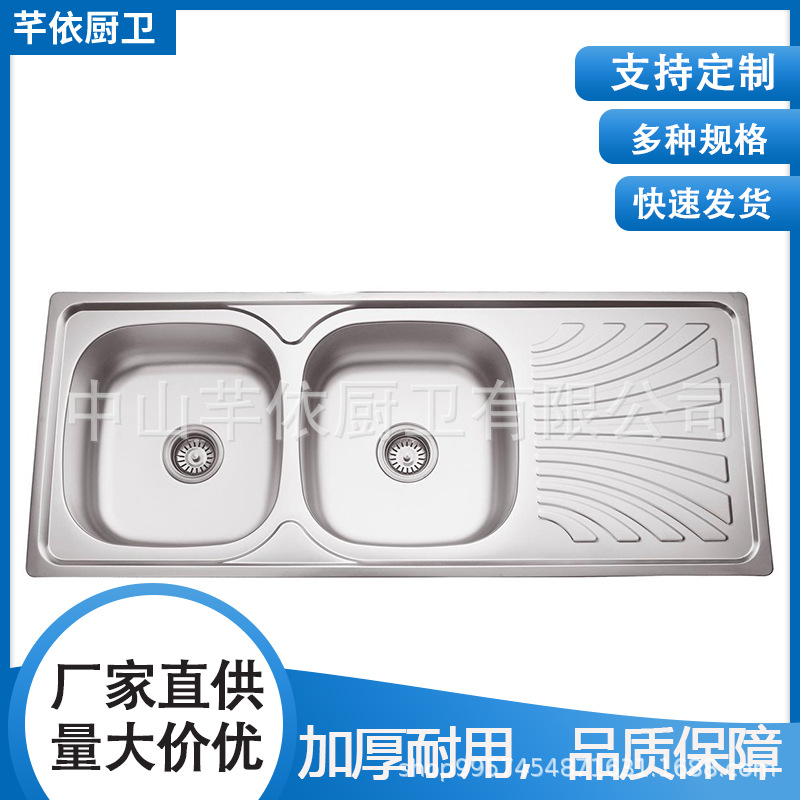 メーカー直供双盆帯板厨房洗面器洗面器ステンレス12050a研磨水槽台上池