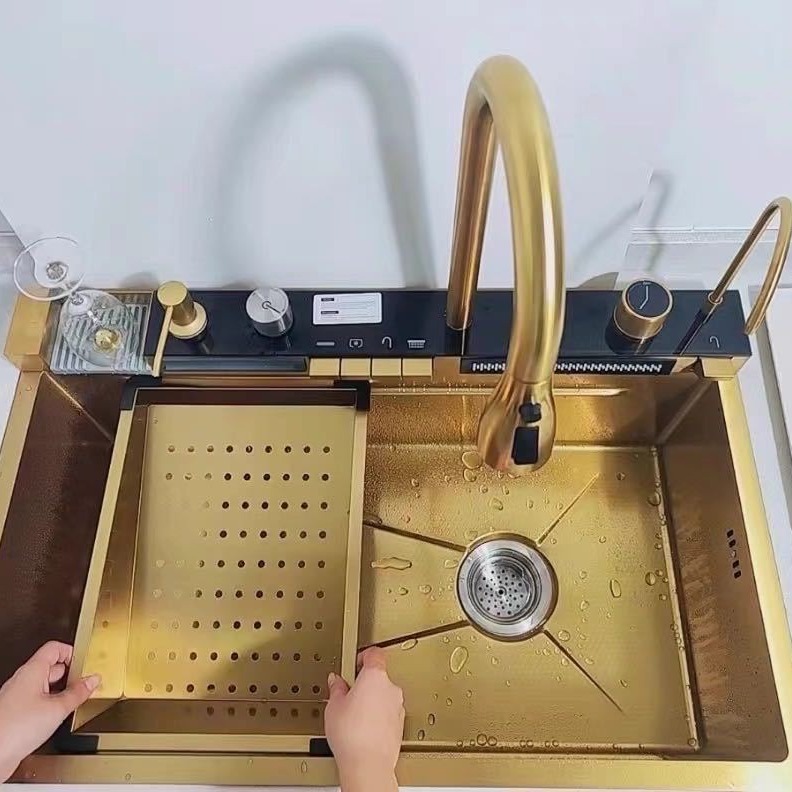 新しいナノコーティング金色飛雨全配置セットステンレス厨房水槽大単槽野菜洗浄盆