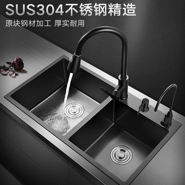 黒色二槽304ステンレスキッチンナノ増厚水槽洗面台の洗面台の洗面台の下