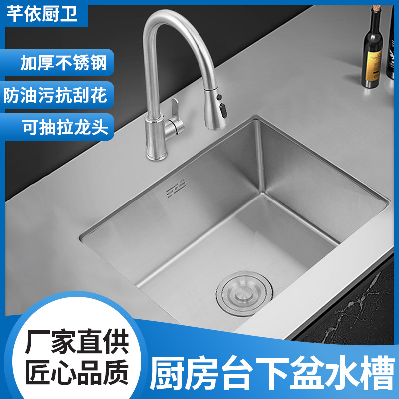 メーカー卸売りSS 304ステンレス増厚飛雨水槽大単槽滝洗菜盆家庭用水槽セット