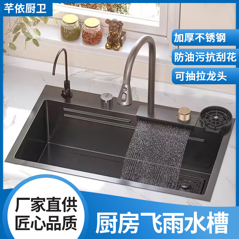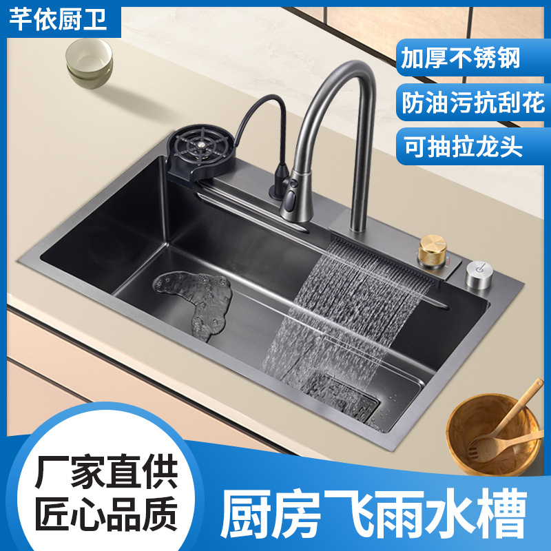 スマート飛雨水槽デジタルサメ滝大単槽厨房ナノ洗面器日本式ステンレス洗面器