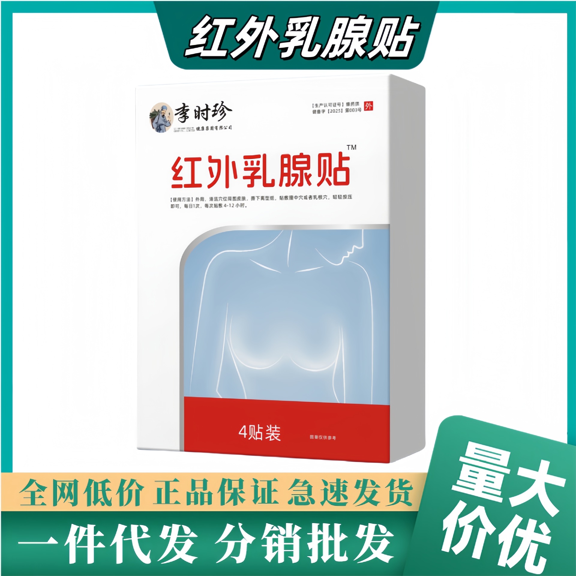 Li Shizhen 遠赤外線乳房パッチ、硬い塊を解消する増殖石膏パッチ、乳房の腫れと痛みの術後の特別なパッチ