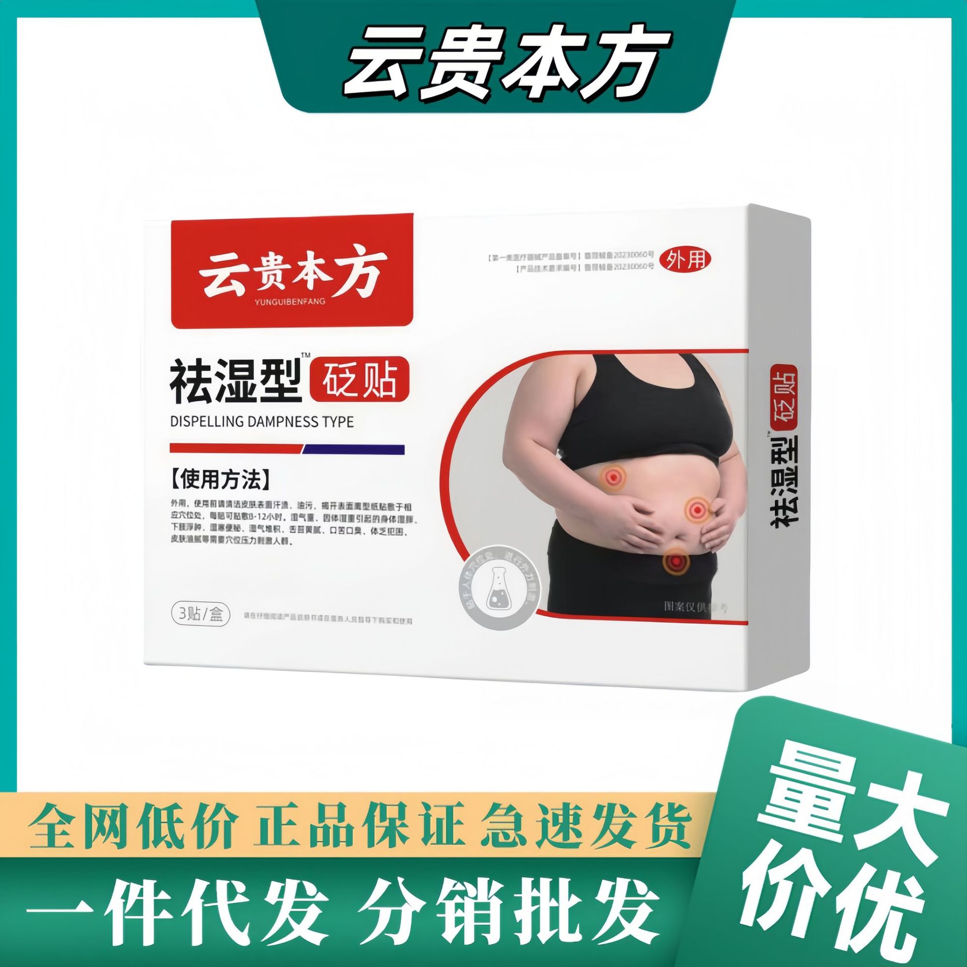 薬医雲貴本方湿気除去穴治療パッチ、湿気と体の冷えを取り除く、脚のむくみ、腰のむくみ、ワンピース配送