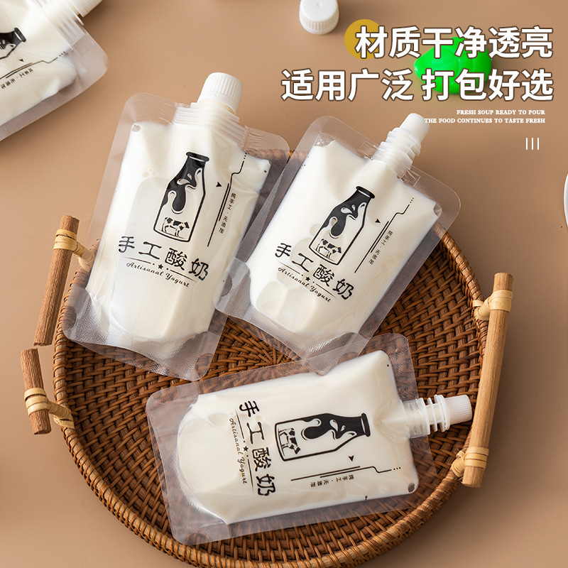 透明ヨーグルト袋自立携帯ジュースミルクティー分注袋使い捨て食品級飲料外に口袋を持っている
