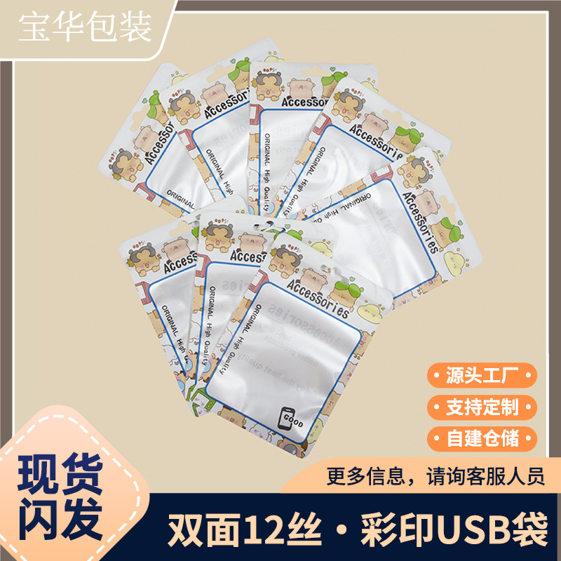 漫画カラー印刷包装袋usbケーブルuディスクイヤホン充電器自封袋部品アクセサリー中性包装袋