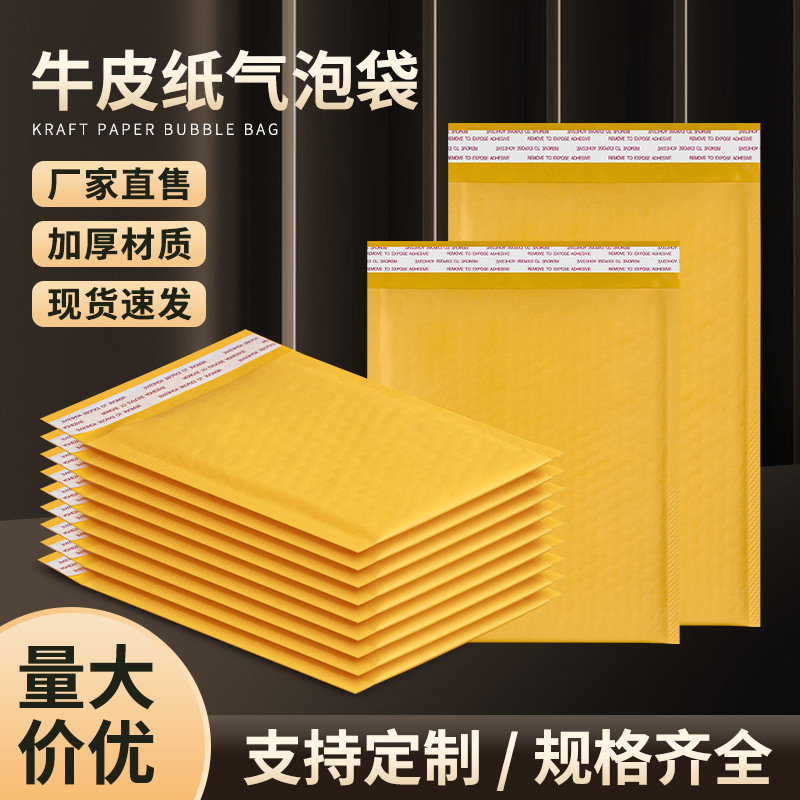 黄色のクラフト紙封筒気泡袋転倒防止防震厚い卸売り泡包装袋物流梱包宅配袋