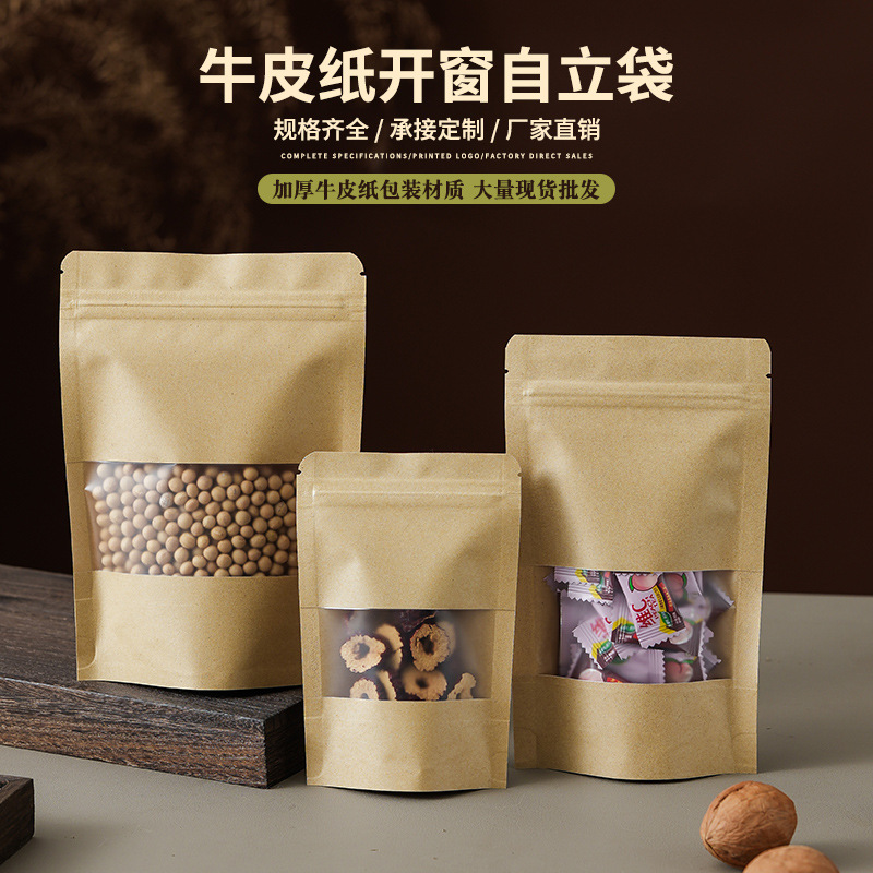 クラフト紙自封袋ナッツ茶フロスト開窓食品包装袋防水密封袋クラフト紙自立袋