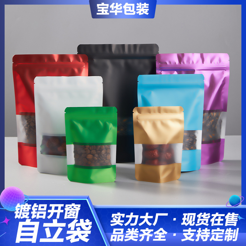 カラーフロスト開窓アルミ箔自己密封包装袋コーヒー牛肉ビスケット茶葉密封ファスナー自立食品袋
