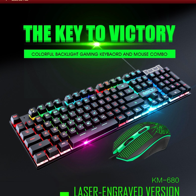 メーカーの卸売りであるイミクス有線ゲームキーボード懸濁キーキャップ虹バックライトキーボードマウスセットKM-680
