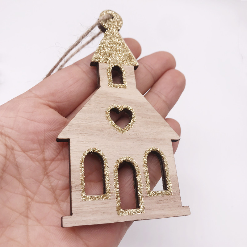アマゾンの人気クリスマスの木製の家のペンダントキラキラ10cmの家のペンダントクリスマスツリーの装飾diy