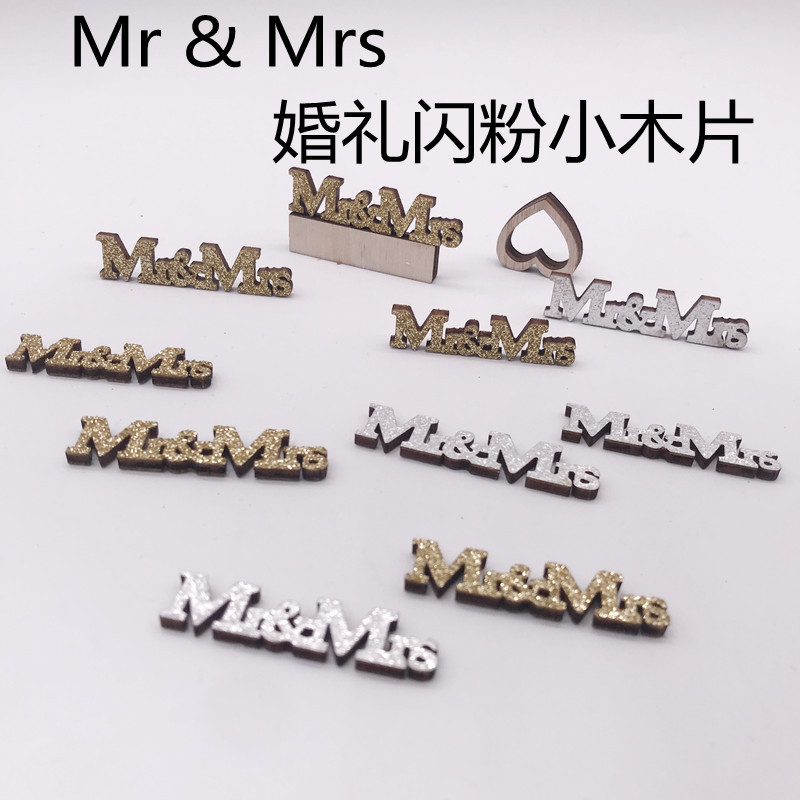 アマゾンの人気結婚式Mr & Mrフラッシュピンクの木片金葱銀色結婚式パーティー装飾木片DIY
