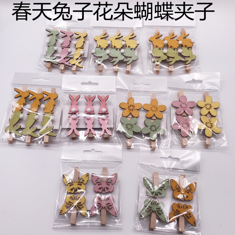 国境を越えて人気のある木製ウサギの花蝶クリップイースター芝生植木鉢装飾木クリップ工芸品diy