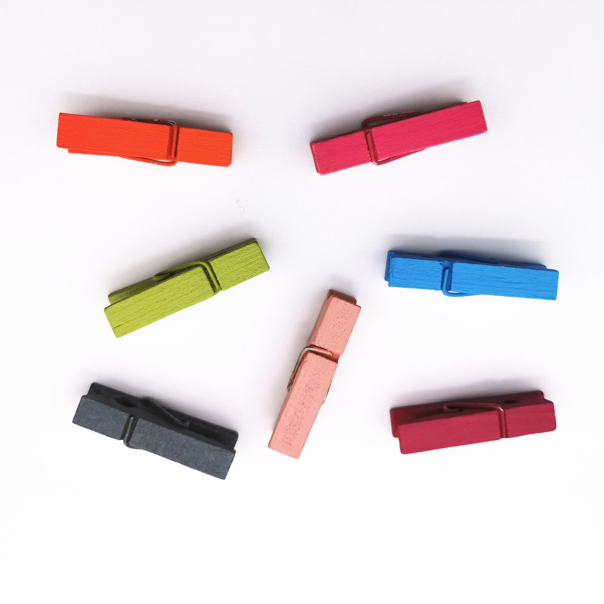 カラー木製小クリップ35mm多色オプション装飾小クリップ