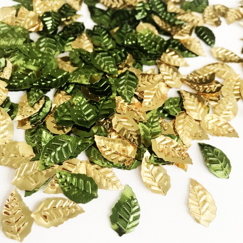 金色の木の葉の工芸品の紙くずパーティーは緑の小さい木の葉のスパンコールを投げます。