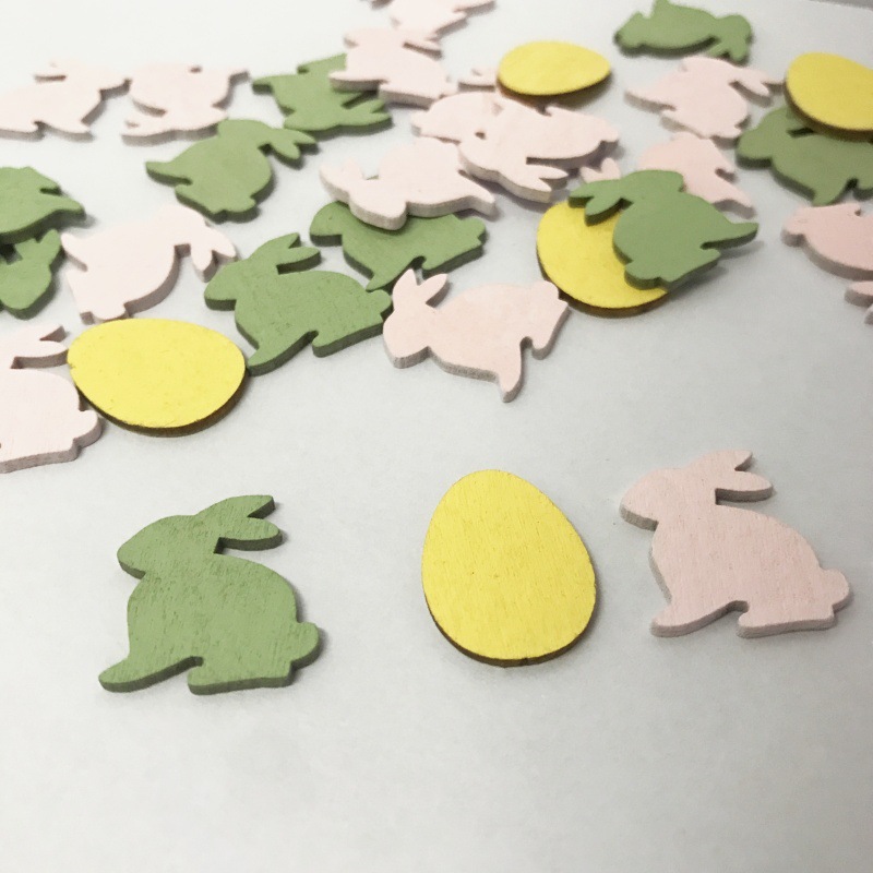 イースターカラーのウサギの卵の小さい木片の装飾品の緑色のウサギのピンクのウサギの黄色の卵のdiyの組み合わせの補助材料