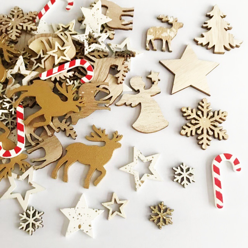 木製アクセサリー クリスマス装飾 小さな木片 木製 クリエイティブ クリスマス 手作り DIY 星 スノーフレーク 鹿 マルチ