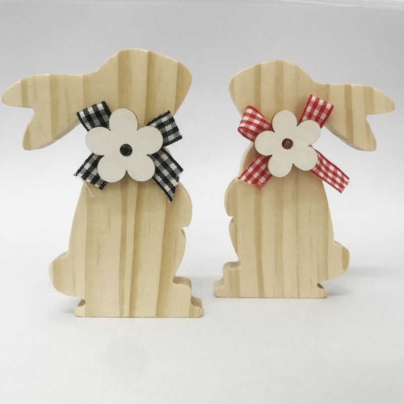 イースターの実木の蝶結びのウサギの置物は超厚い実木のウサギの工芸品を飾って家の装飾のウサギを飾ります。