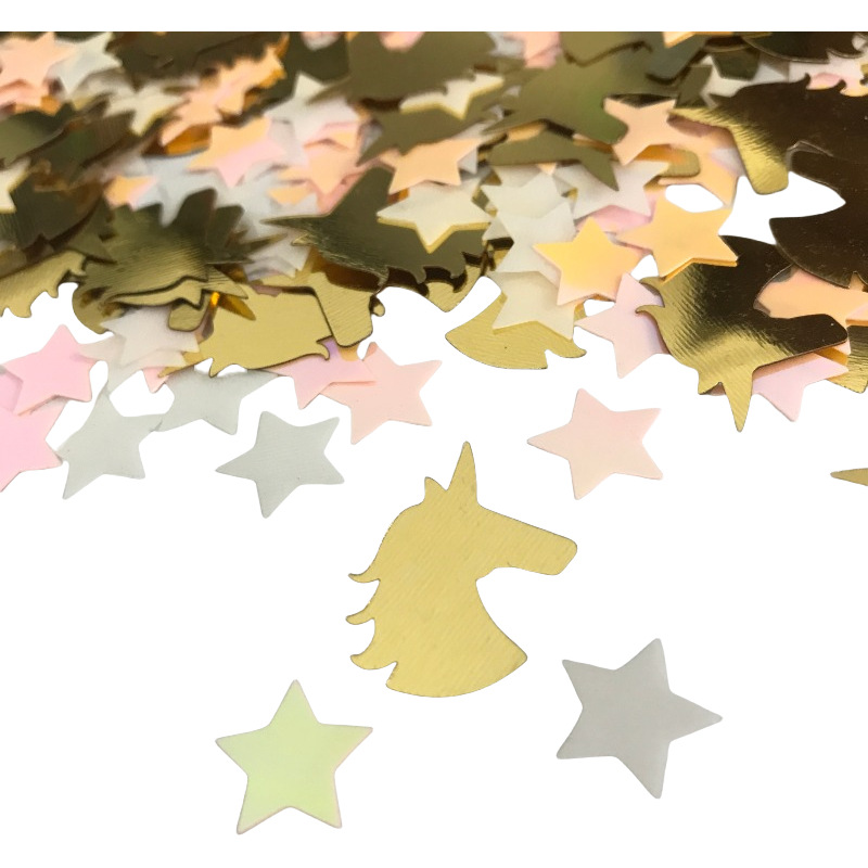 パーティーのユニコーンの子供の歳はスパンコールの赤ちゃんのパーティーの装飾の紙くずのユニコーンのピンクの星を投げて混ぜます。