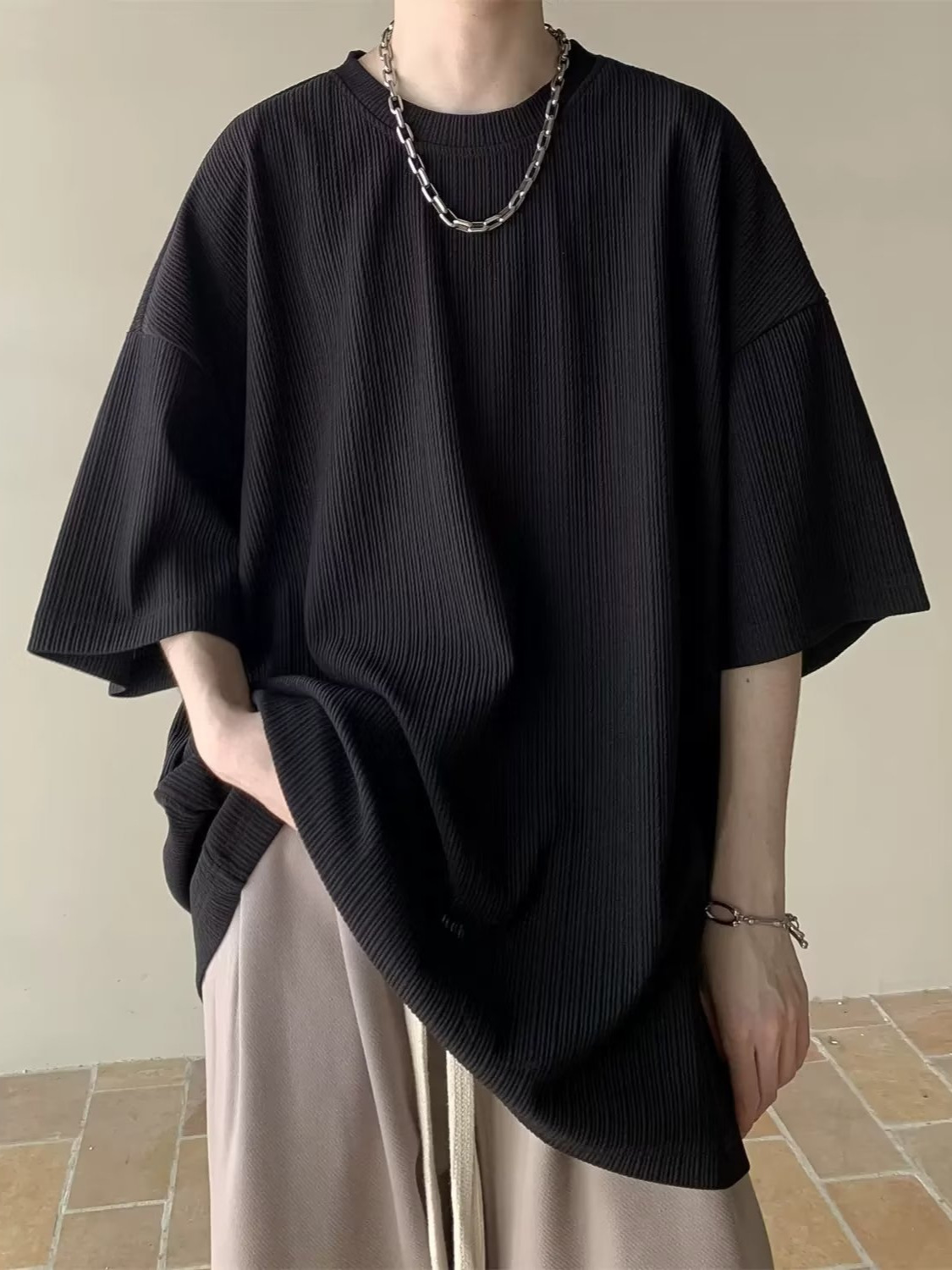 アイスシルク半袖Tシャツメンズ夏ドレープ五分袖メンズゆったり韓国風トレンドブランドトレンドヘビーウェイトアメリカンTシャツ