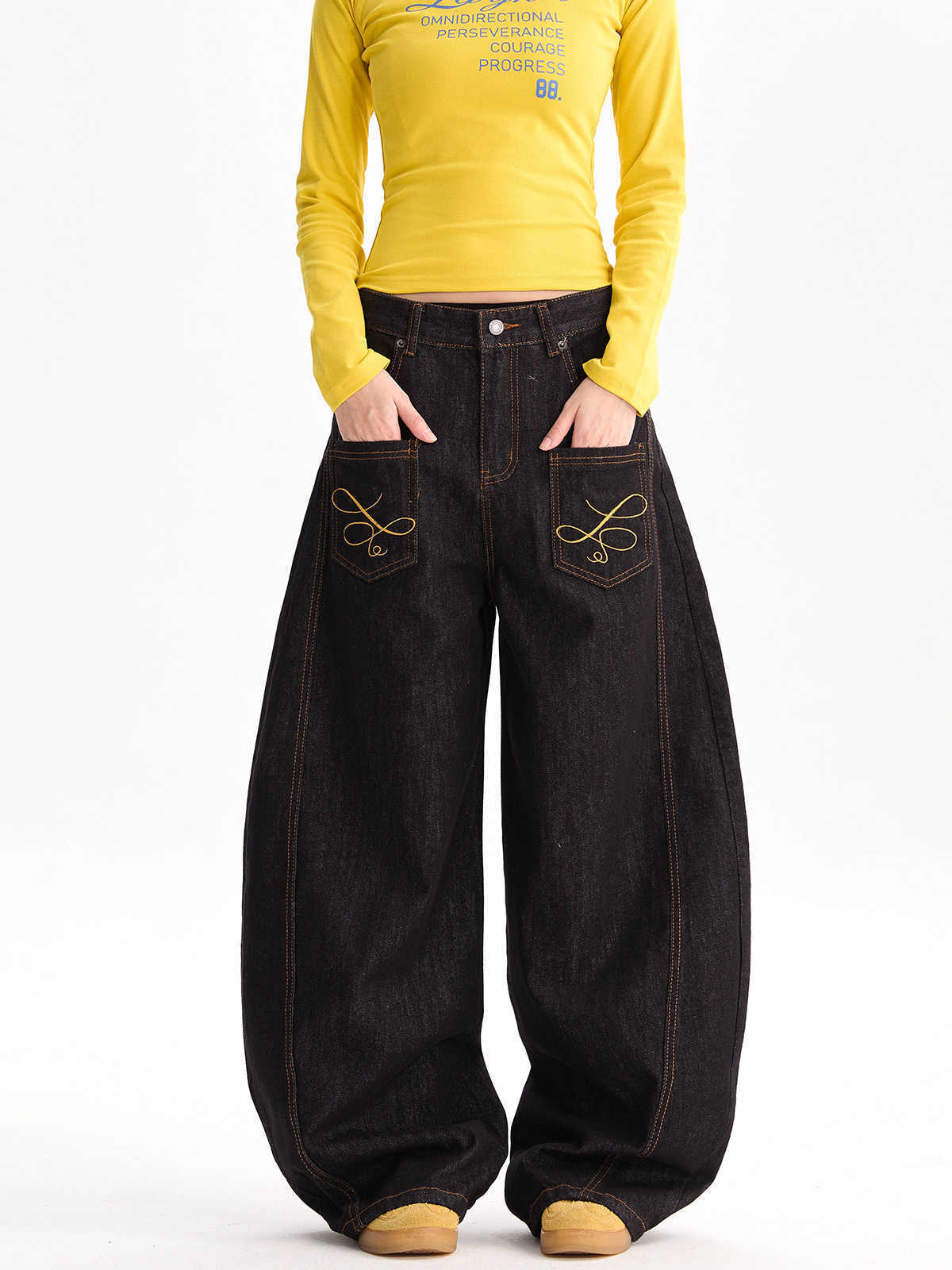 アメリカのニッチなレトロデザインのインバーテッドポケットジーンズ、男性と女性用、クリーンフィット、ハイセンス、ルーズで多用途なパンツ