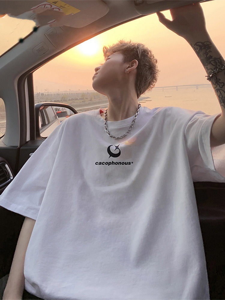 パーソナライズされたプリント半袖 Tシャツメンズ 2025 夏ルーズ 5 分袖 Tシャツトレンディなブランドイン純綿インナーレイヤリングシャツ
