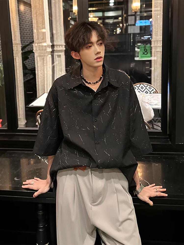 英国ヤッピーメンズテクスチャードシャツデザインハイエンド半袖シャツメンズ薄型ヘアスタイリスト夏服