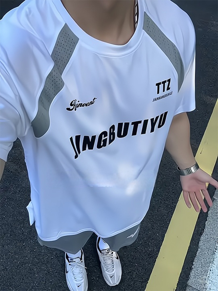 アメリカンレトロアイスシルク速乾性半袖Tシャツメンズサマースポーツフィットネススポーツ学生バスケットボール通気性トレーニング服