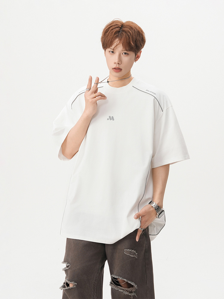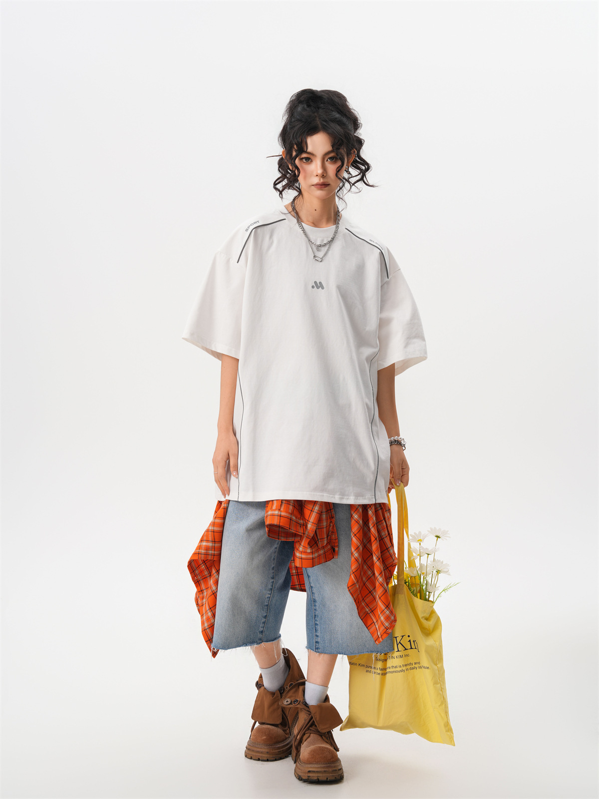 アメリカンクール半袖Tシャツ男女兼用2025夏トレンドブランドラインデザインTシャツルーズカジュアル万能トップス