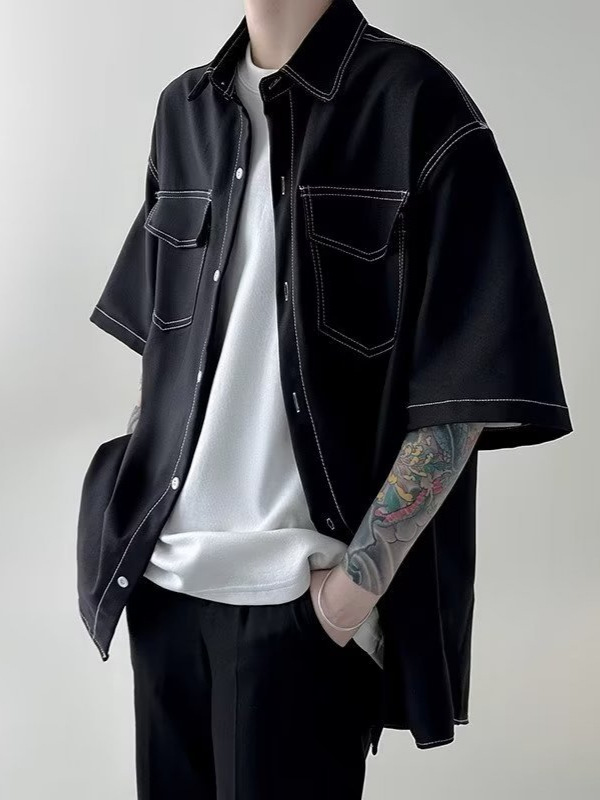 夏の新作日本製無地メンズ半袖シャツ作業服トレンディハンサム大きいサイズルーズカジュアルカップルジャケット