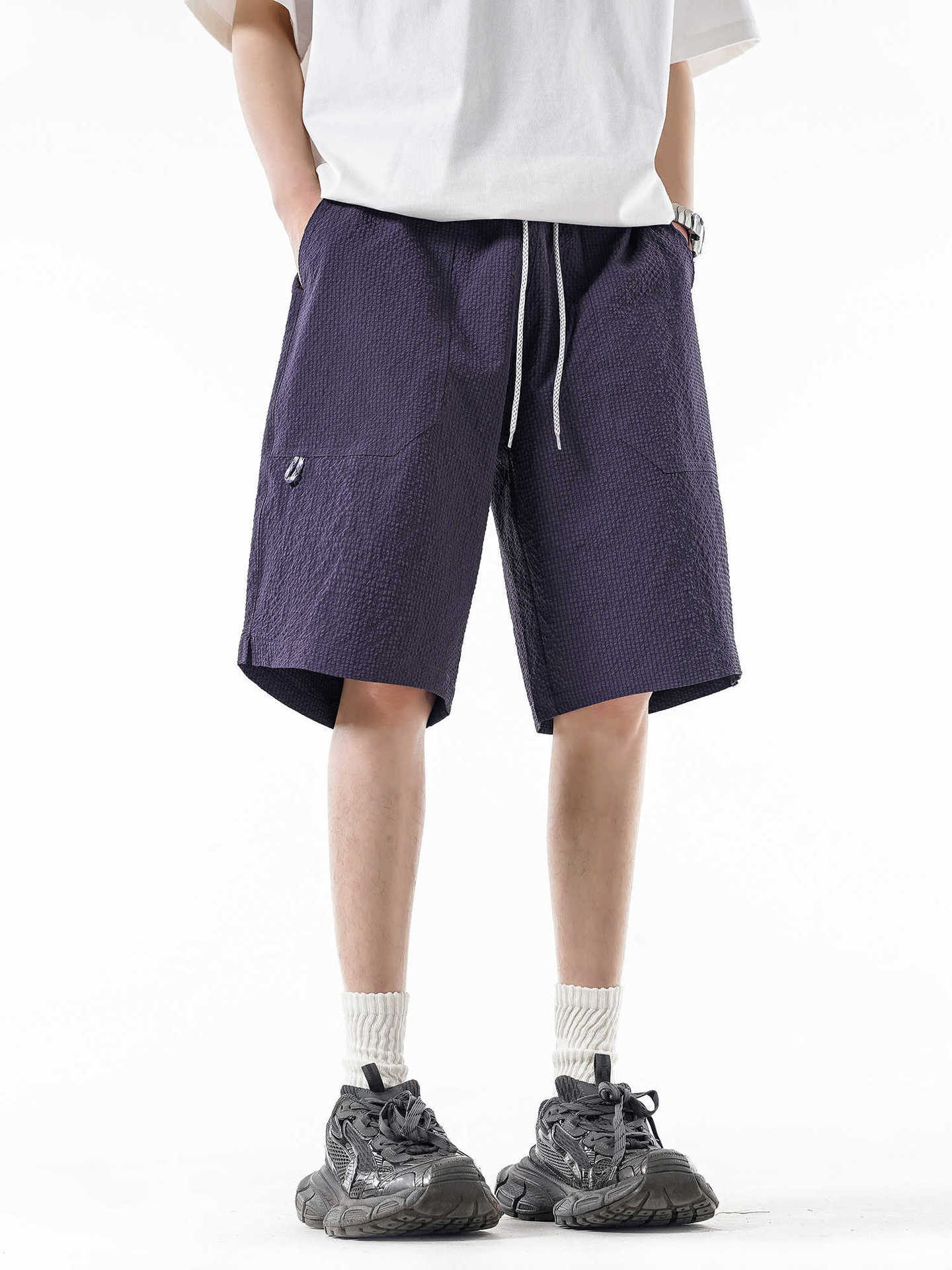 速乾性カーゴショーツメンズ 2025 夏アメリカンバブルチェックワイドレッグスポーツパンツアウトドア通気性ビーチパンツ