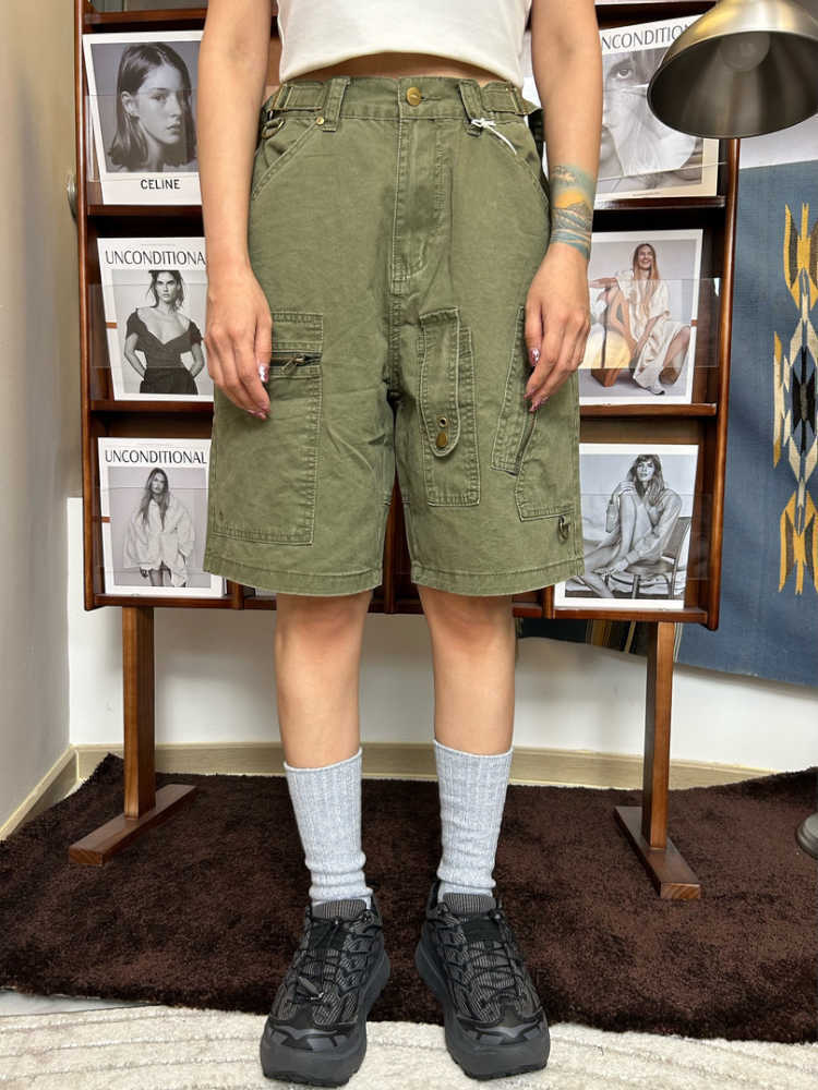 アメリカンレトロニッチハイウエストジッパーカーゴショーツ男性と女性のためのトレンディなストリートルーズストレートカジュアルパンツ