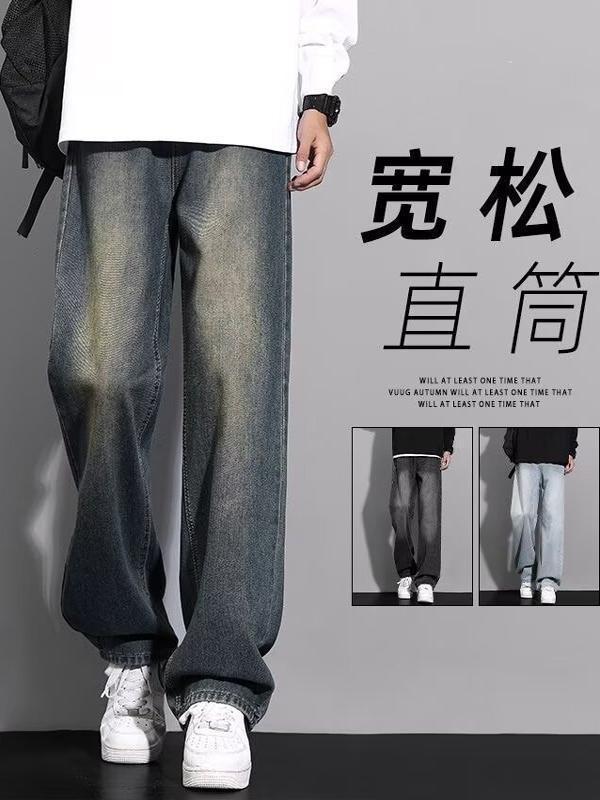 メンズストレートグラデーションジーンズ春夏ルーズカジュアルパンツアメリカントレンドレトロティーンエイジャー男性ズボン
