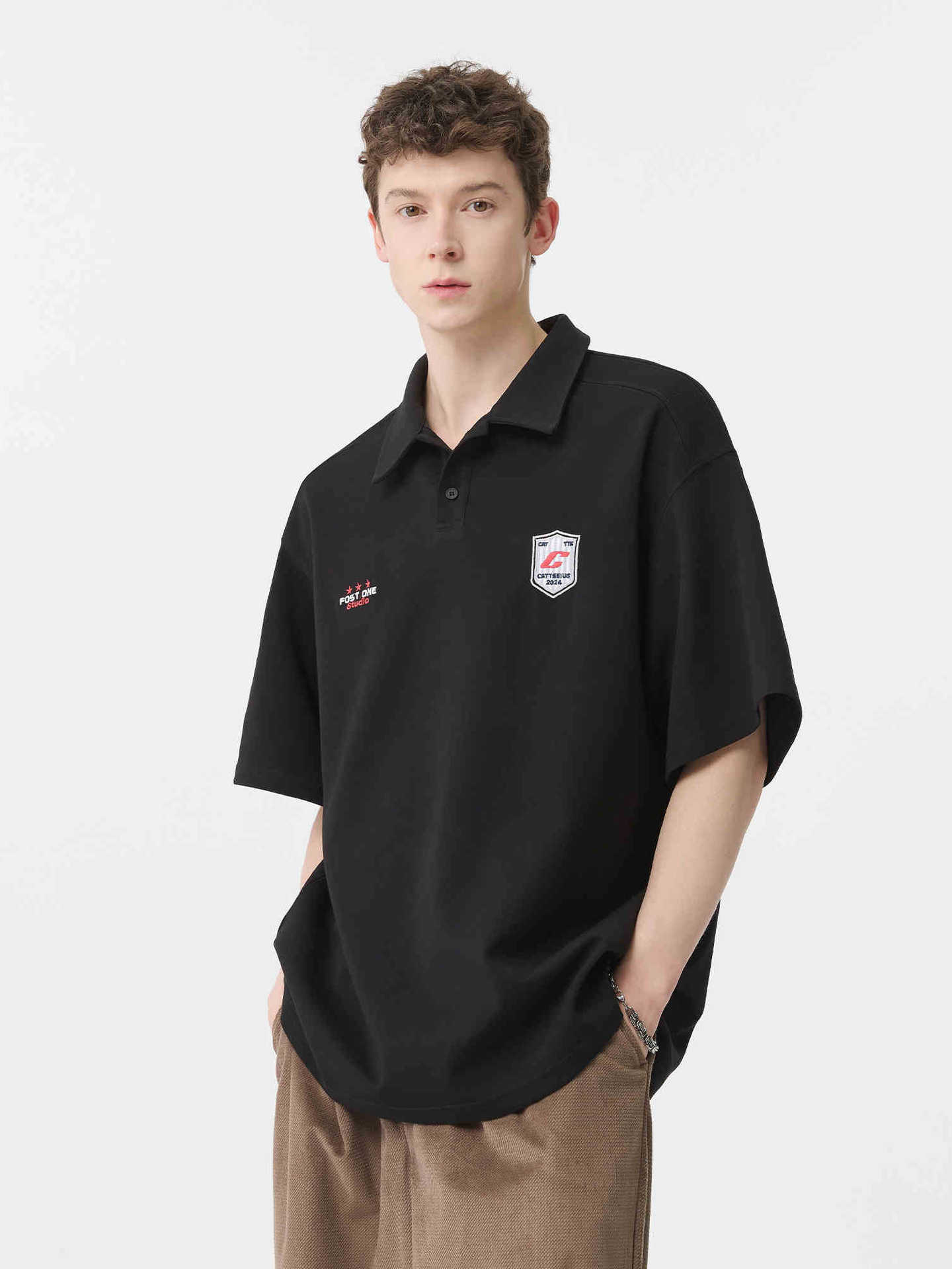 アメリカンレトロな不規則なラペルデザインクレンフィットシンプルルーズTシャツトップニット半袖男女兼用