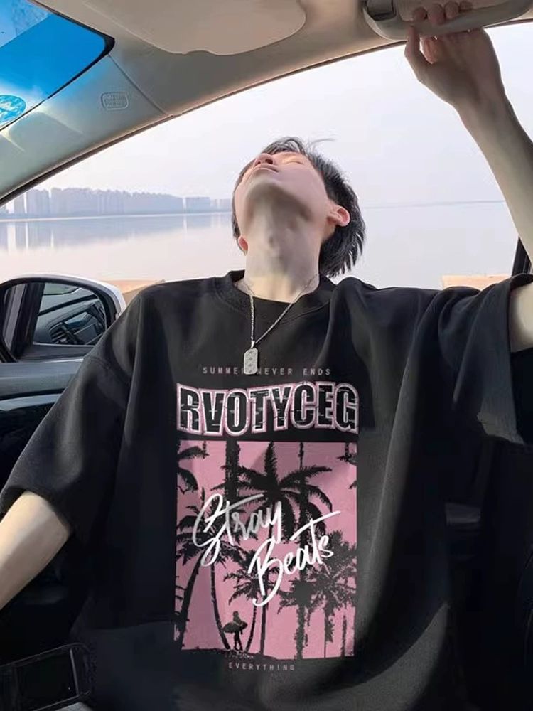 ヘビーウェイト半袖TシャツメンズトレンディアメリカンレトロオーバーサイズルーズハンサムピュアコットンハイストリートTシャツ