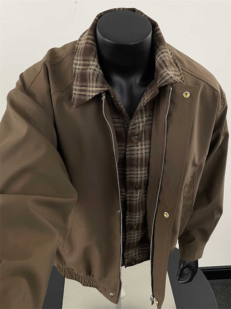 アメリカンヴィンテージヴィンテージジャケット男性と女性のための春と秋メイラード着用偽ツーピースジャケットラペルショートジャケット