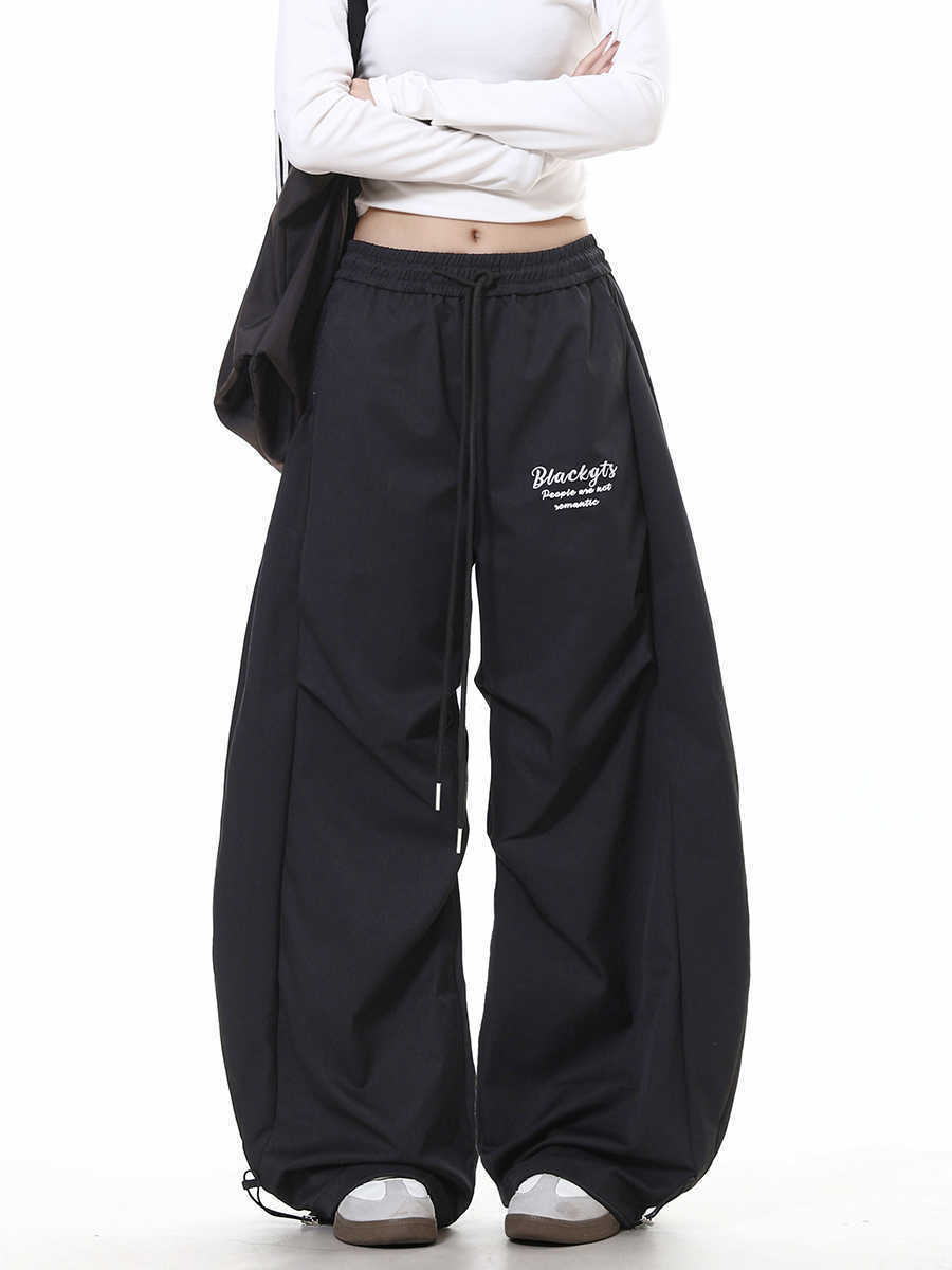 アメリカンカレッジスタイルの文字刺繍空挺部隊オーバーオールパンツ、男性と女性用、春と秋のルーズプリーツデザイン、カジュアルなワイドレッグカーブ