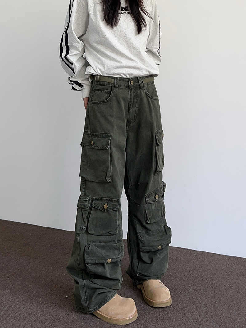アメリカンストリートレトロヘビーデューティーマルチポケットオーバーオール男性と女性用クリーンフィットルーズストレートニッチワイドレッグパンツ男性用