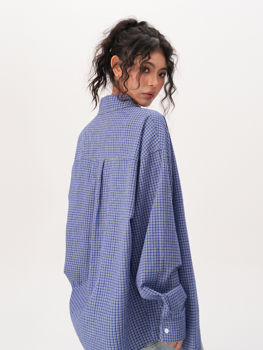 アメリカンレトロな怠惰なルーズブルーチェック柄シャツ女性と男性のための春と秋の新しいトレンディなブランドカジュアル長袖シャツトレンディな男性