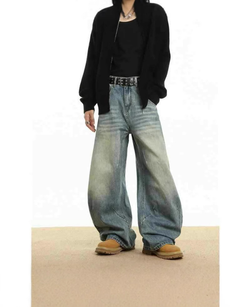 アメリカンレトロダニーセンターカーブワイドレッグジーンズメンズニッチワイドレッグフロアレングスカジュアルバギーシザーカジュアルパンツ